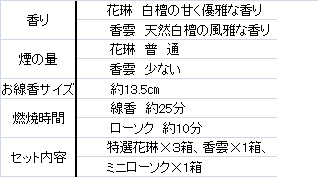 進物線香「特選花琳・ミニローソクセット」 紙箱入